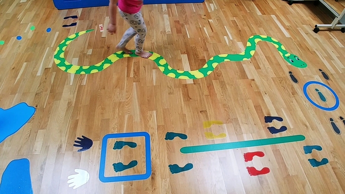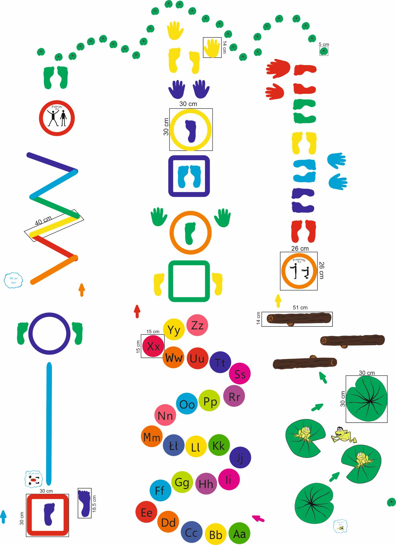 • naklejek: skacz jak żaba, idź po linii, idź jak krab.