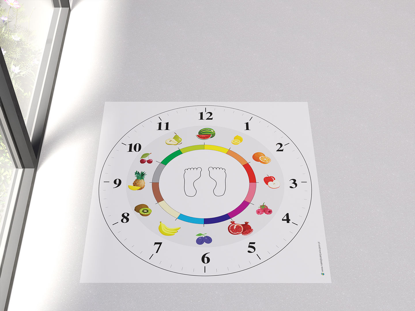 Do nabycia w formie naklejki podłogowej Zegar ćwiczenia świadomości ciała