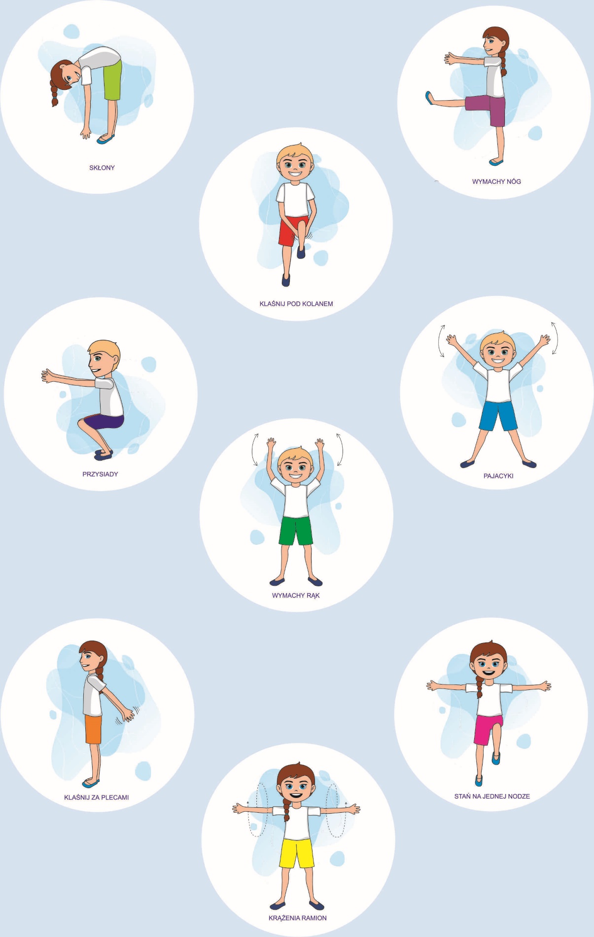 Każda naklejka to inne ćwiczenie. Możemy je wykonywać wszystkie po kolei lub kilka wybranych.