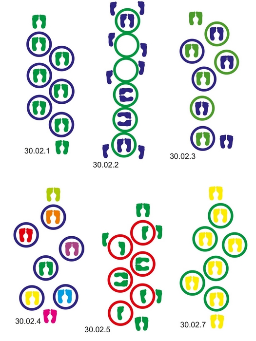 Naklejki przeznaczone są do przyklejenia na podłogę w szkole, przedszkolu, świetlicy, pokoju dziecka, gabinecie, poczekalni. Zachęcają dzieci do spontanicznej aktywności ruchowej, wspierając wszechstronny rozwój. Ćwiczą zręczność, koordynację, praksję, orientację w przestrzeni i planowanie ruchów. Redukują napięcie i stres. Każdy zestaw może być używany samodzielnie lub w połączeniu z innymi zestawami tworzyć większe ścieżki.